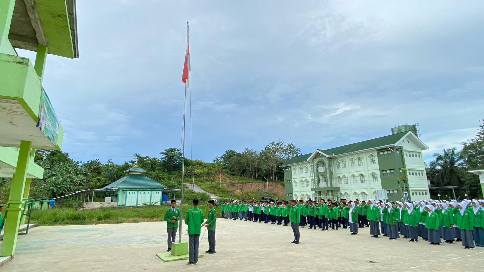 Para Santri/Santriwati Ponpes As'Adiyah sedang melaksanakan upacara bendera. (Dok.Kamal Soreyanto). Perbesar