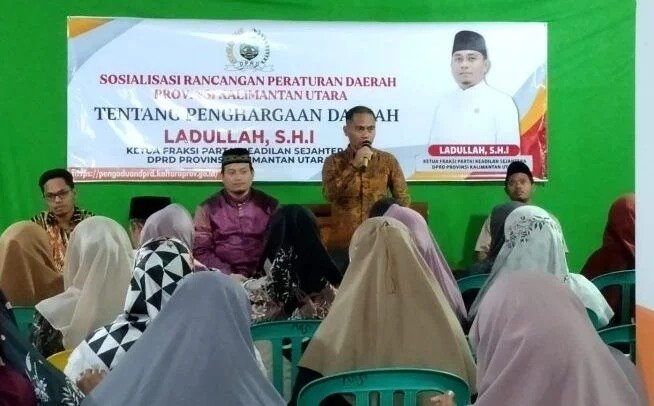 NUNUKAN, infoSTI – Anggota Komisi I DPRD Provinsi Kalimantan Utara (Kaltara) H. Ladullah, menggelar Sosialisasi Rancangan Peraturan Daerah (Raperda) tentang Penghargaan Daerah di Sekretariat DPD Partai Keadilan Sejahtera (PKS) Nunukan, Sabtu (14/3/2026).