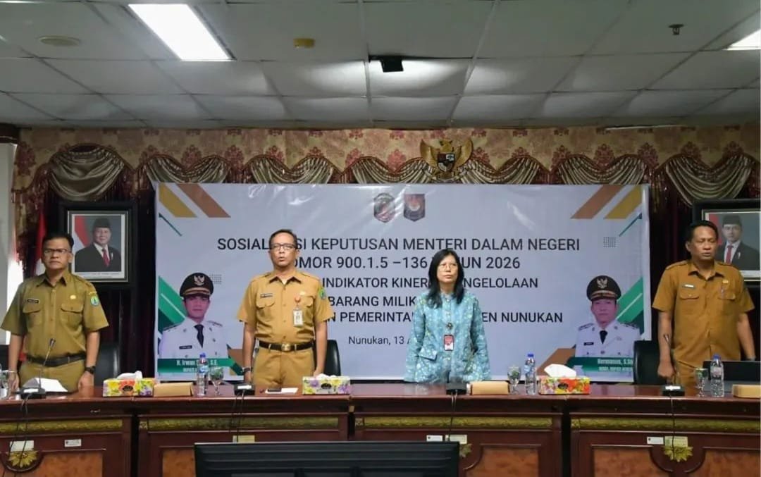 NUNUKAN, infoSTI – Pj. Sekretaris Daerah Drs. Raden Iwan Kurniawan membuka kegiatan Sosialisasi Keputusan Mendagri terkait Indikator Kinerja Pengelolaan Barang Milik Daerah (BMD), Senin (13/4/2026).